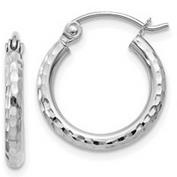 14 Karat White Gold Diamond Cut 2mm Round Tube Hoop Earrings 15mm
