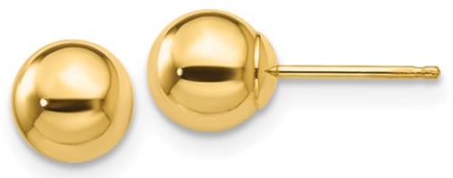 14 Karat Yellow Gold 6mm Polished Ball Stud Earrings