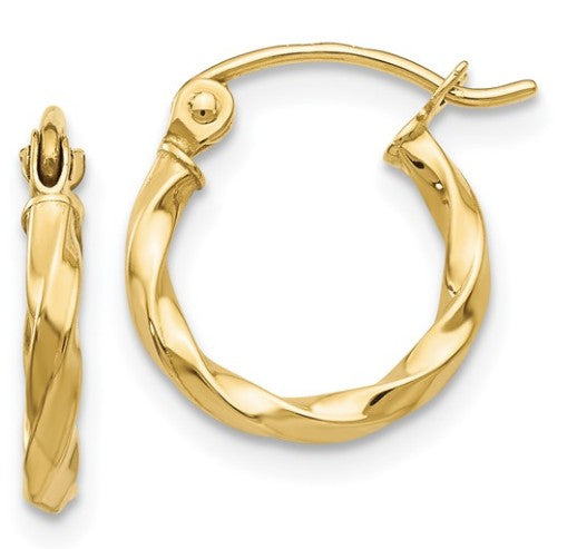 14 Karat Yellow Gold Polished Twist Hoop Earrings 2X10mm