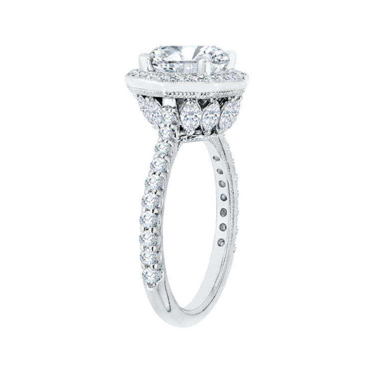Diamond Octagon Shape Halo Engagement Ring in 18K White Gold (Semi-Mount)