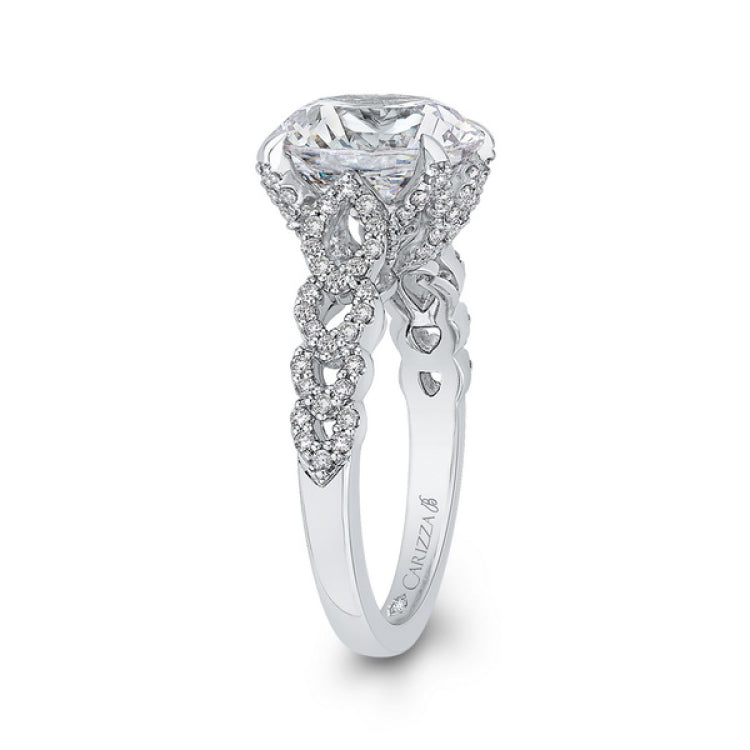 Diamond Engagement Ring in 18K White Gold (Semi-Mount), Side Stone Shape: Round, Side Stone Color: GH, Side Stone: 101