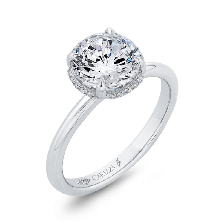 Diamond Engagement Ring in 18K White Gold (Semi-Mount), Side Stone Shape: Round, Side Stone Color: GH, Side Stone: 41