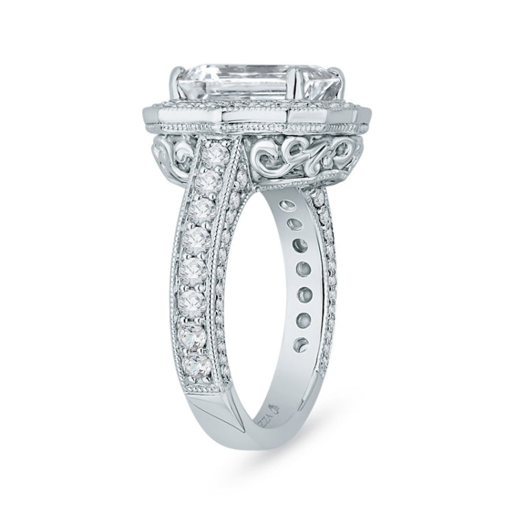 Emerald Cut Diamond Halo Bridal Engagement Ring in 18K White Gold (Semi-Mount)