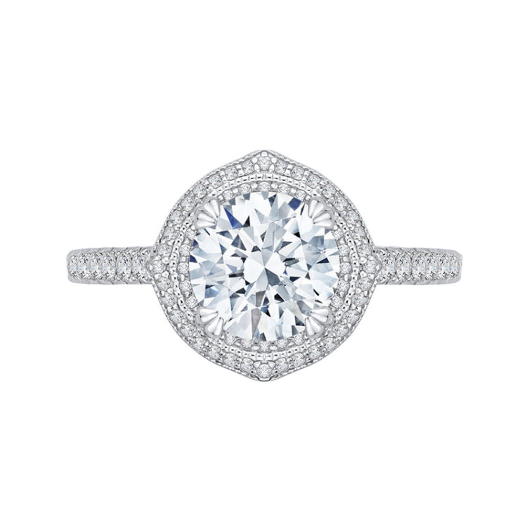 Double Halo Diamond Engagement Ring in 18K Two-Tone Gold (Semi-Mount), Side Stone Shape: Round, Side Stone Color: GH, Side Stone: 77