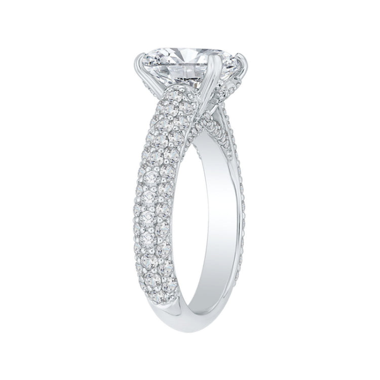 Cushion Cut Diamond Engagement Ring in 18K White Gold (Semi-Mount), Side Stone Shape: Round, Side Stone Color: GH, Side Stone: 101