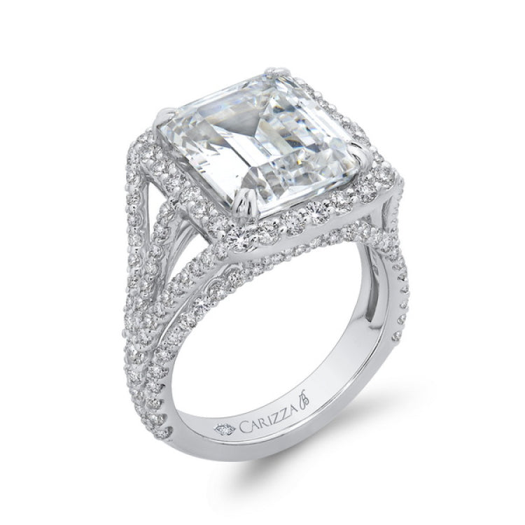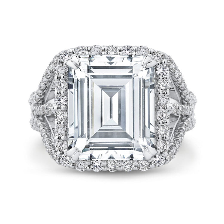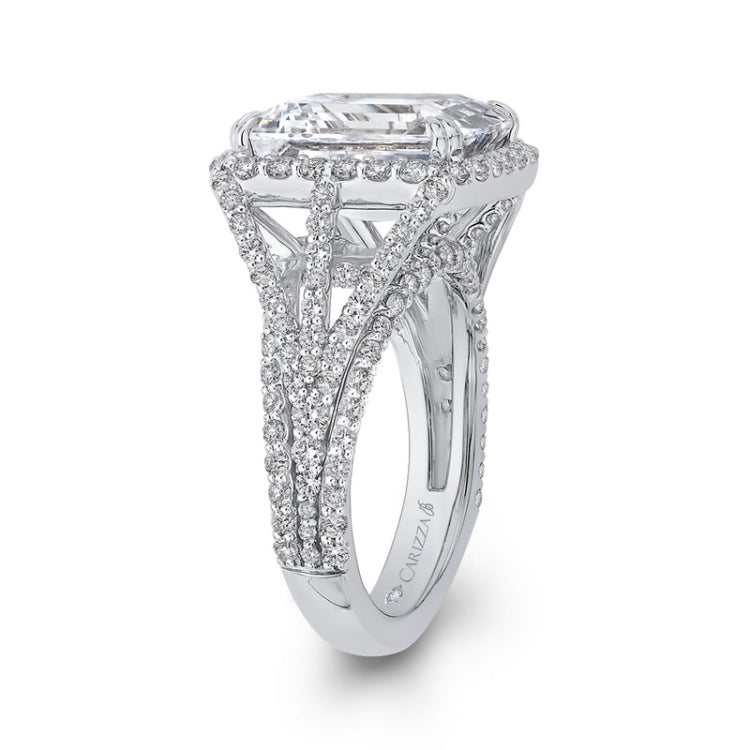 Emerald Cut Diamond Halo Engagement Ring in 18K White Gold (Semi-Mount)