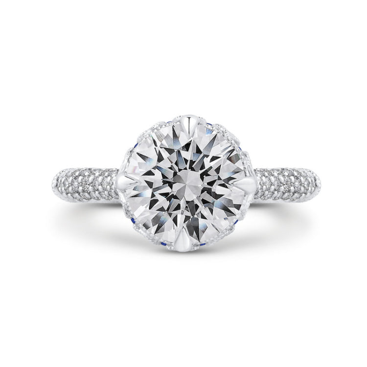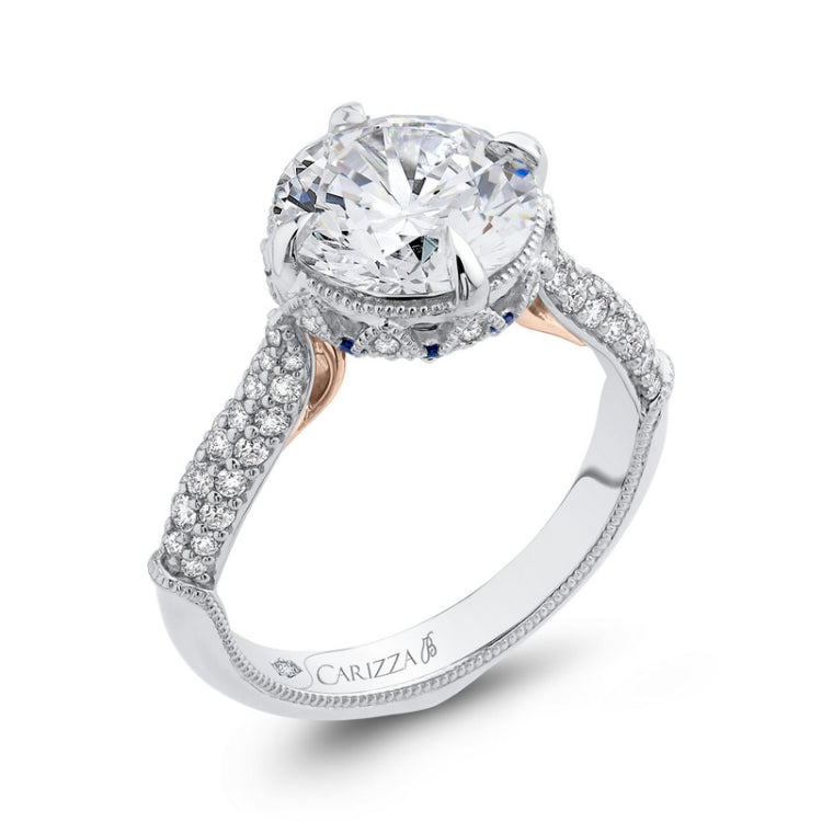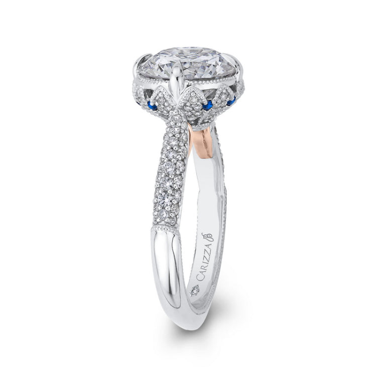 Round Diamond Engagement Ring with Sapphire in 18K Two-Tone Gold (Semi-Mount)