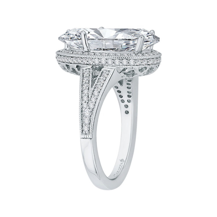 Split Shank Pear Cut Diamond Halo Engagement Ring in 18K White Gold (Semi-Mount)