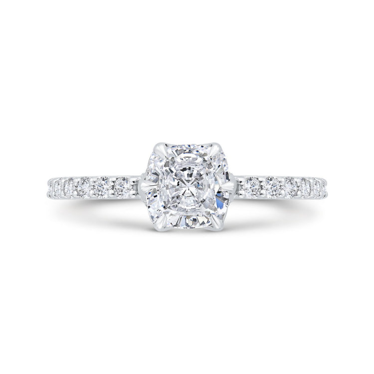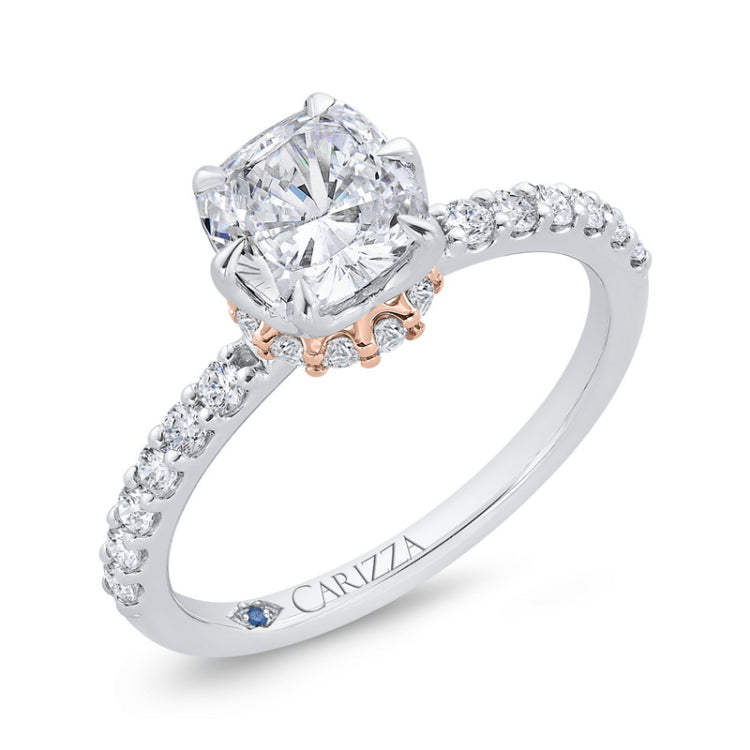 14K Two Tone Gold Cushion Cut Diamond Engagement Ring (Semi-Mount), Side Stone Shape: Round, Side Stone Color: GH, Side Stone: 25