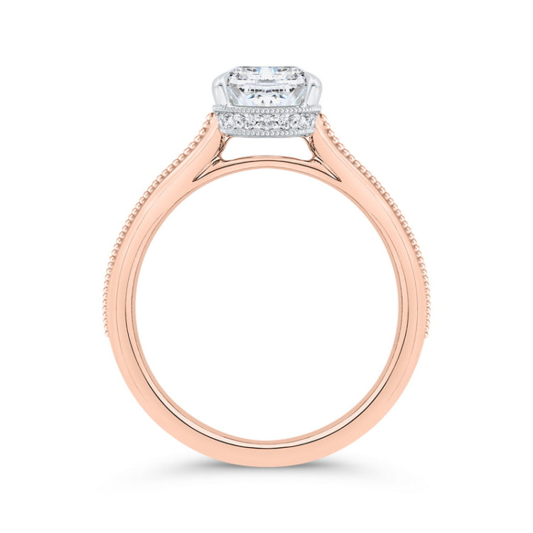 14K Two Tone Gold Cushion Cut Diamond Solitaire Engagement Ring (Semi-Mount)