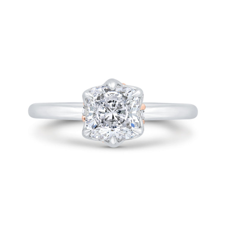 14K Two Tone Gold Cushion Cut Diamond Solitaire Engagement Ring (Semi-Mount)