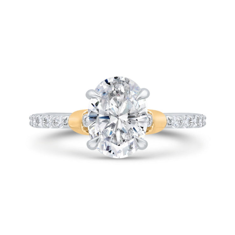 14K Two Tone Gold Oval Cut Diamond Engagement Ring (Semi-Mount), Side Stone Shape: Round, Side Stone Color: GH, Side Stone: 33