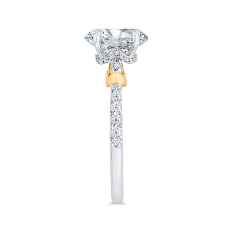 14K Two Tone Gold Oval Cut Diamond Engagement Ring (Semi-Mount)