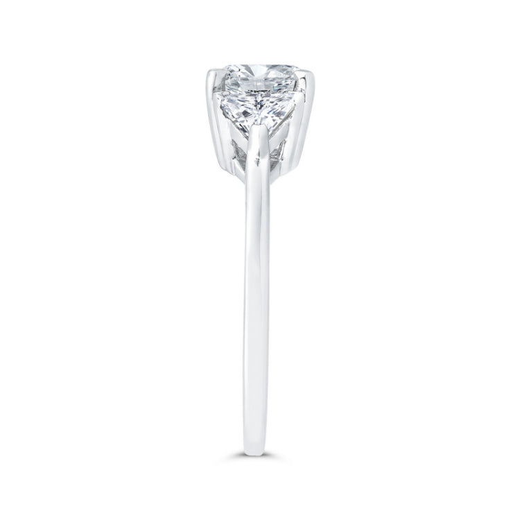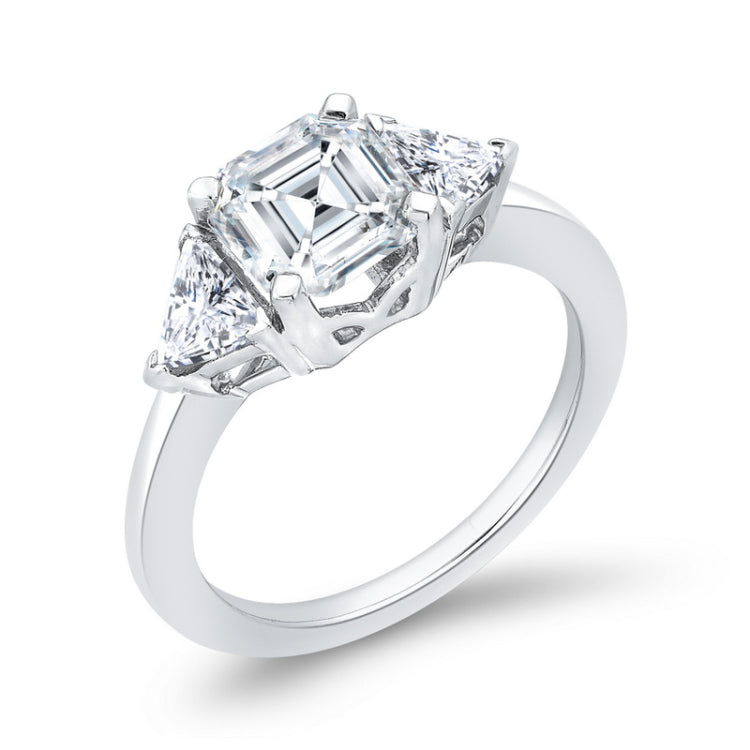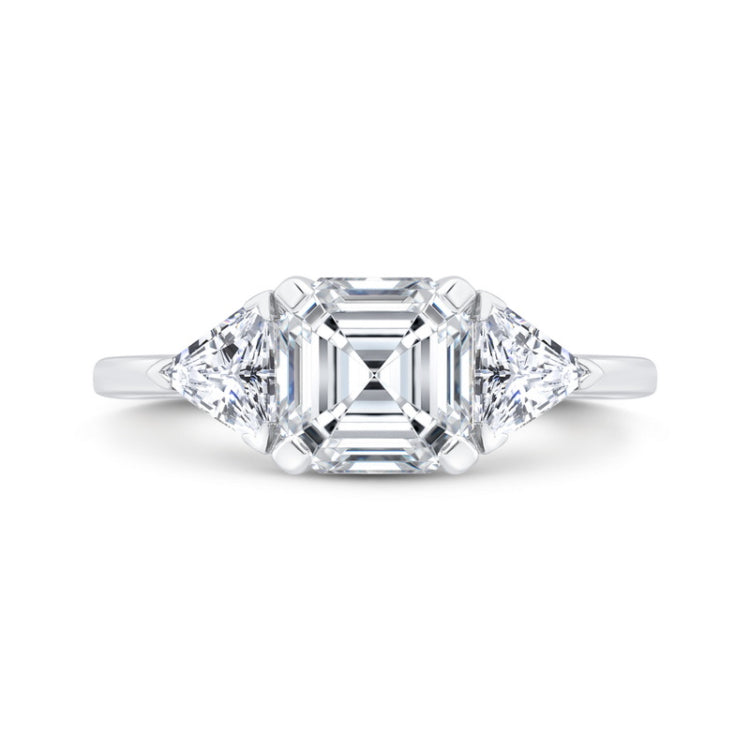 14K White Gold Three Stone Engagement Ring Center Asscher with Trillion sides Diamond, Side Stone Shape: Trillion, Side Stone Color: LAB GH, Side Stone: 2