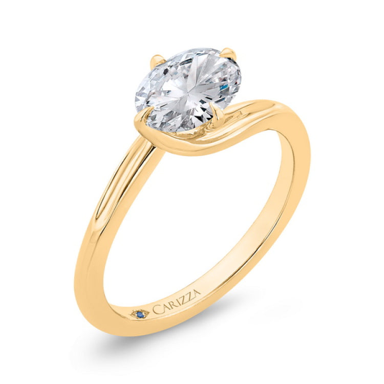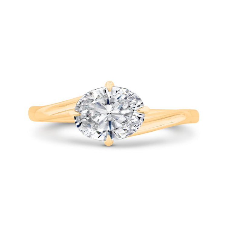 14K Yellow Gold Oval Cut Diamond Solitaire Engagement Ring (Semi-Mount)