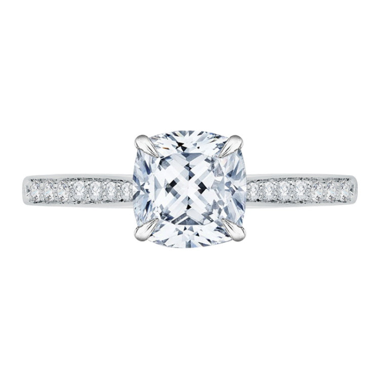 Cushion Cut Diamond Solitaire with Accents Engagement Ring in 14K White Gold (Semi-Mount), Side Stone Shape: Round, Side Stone Color: GH, Side Stone: 19
