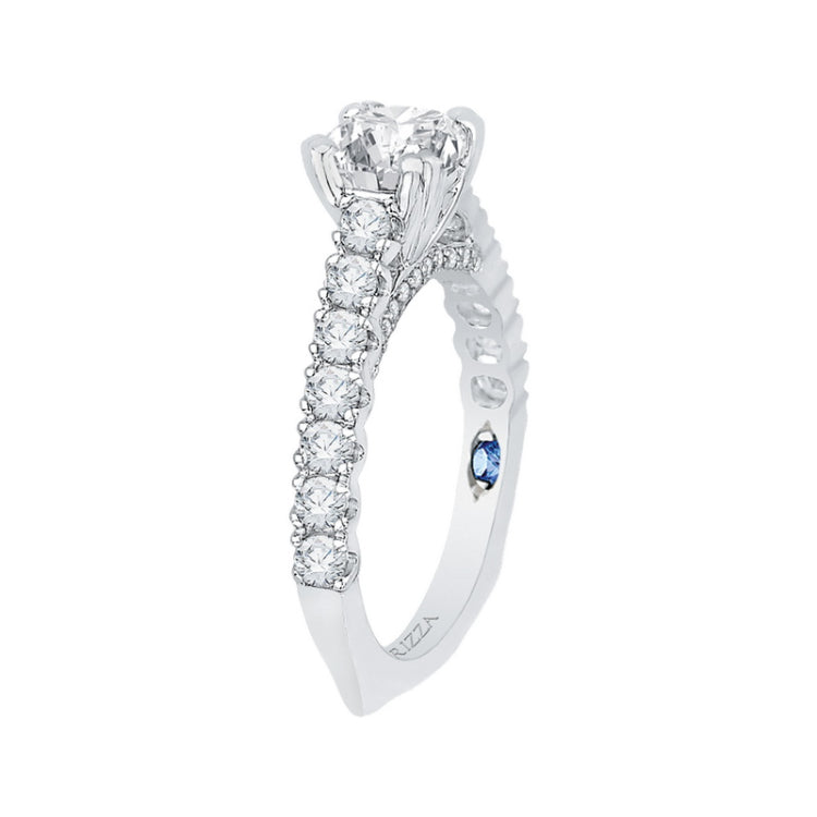 Cushion Cut Euro Shank Diamond Cathedral Style Engagement Ring in 14K White Gold (Semi-Mount), Side Stone Shape: Round, Side Stone Color: GH, Side Stone: 35