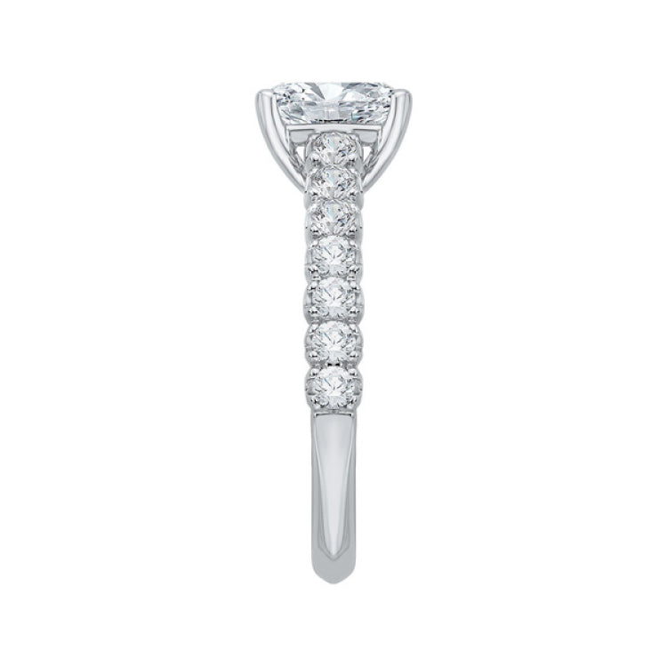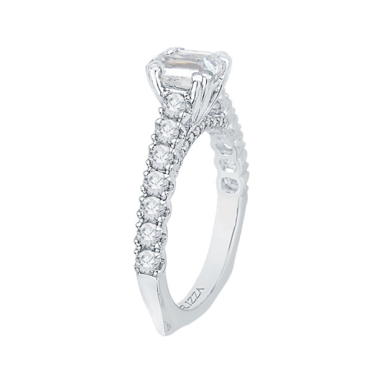 Emerald Cut Euro Shank Diamond Cathedral Style Engagement Ring in 14K White Gold (Semi-Mount), Side Stone Shape: Round, Side Stone Color: GH, Side Stone: 35