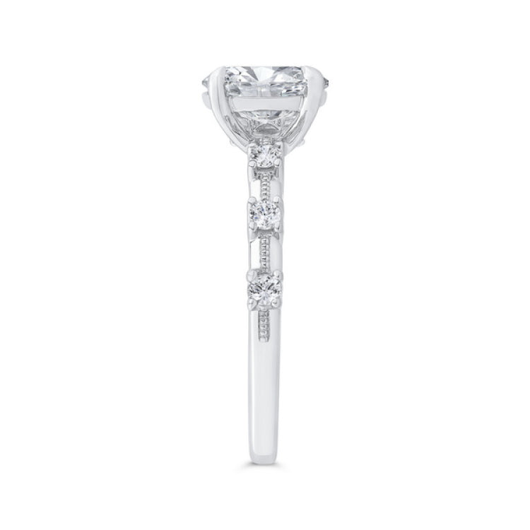 Oval Diamond Engagement Ring In 14K White Gold (Semi-Mount), Side Stone Shape: Round, Side Stone Color: GH, Side Stone: 9