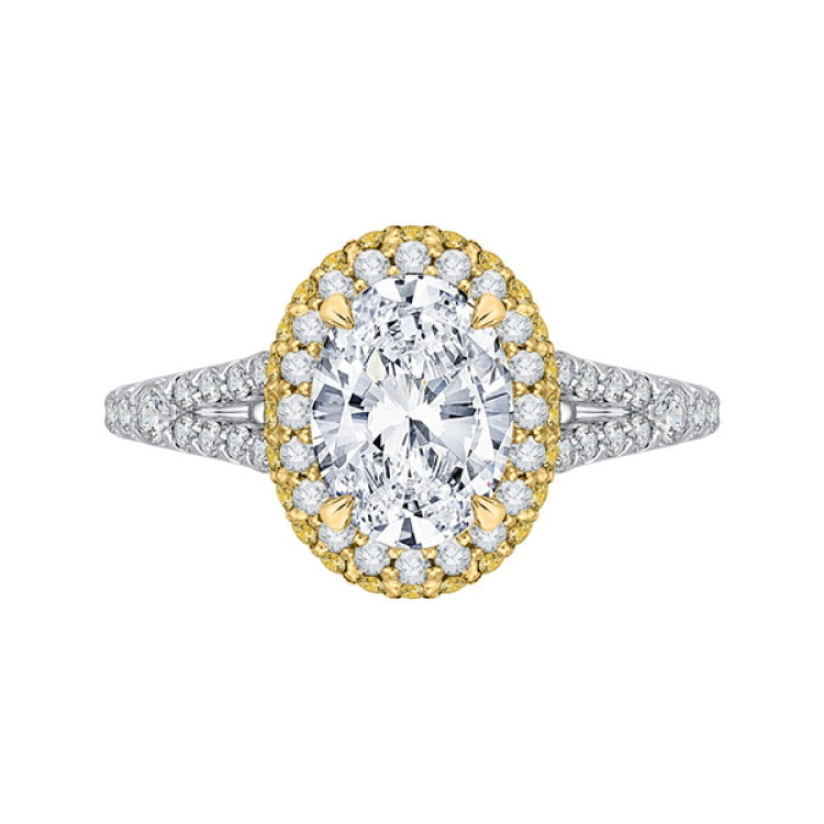 Split Shank Oval Cut Diamond Halo Engagement Ring in 14K Two Tone Gold (Semi-Mount)