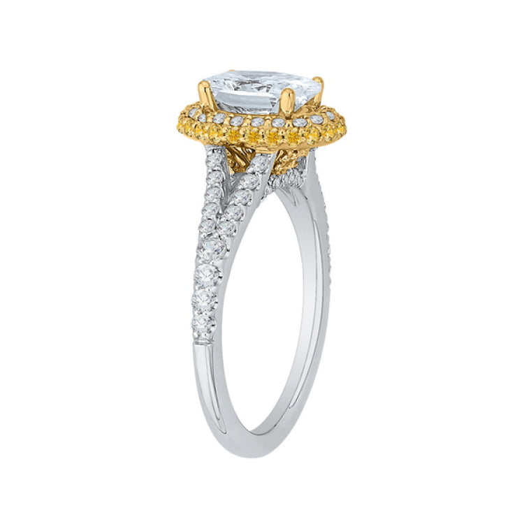 Split Shank Oval Cut Diamond Halo Engagement Ring in 14K Two Tone Gold (Semi-Mount), Side Stone Shape: Round, Side Stone Color: GH, Side Stone: 91