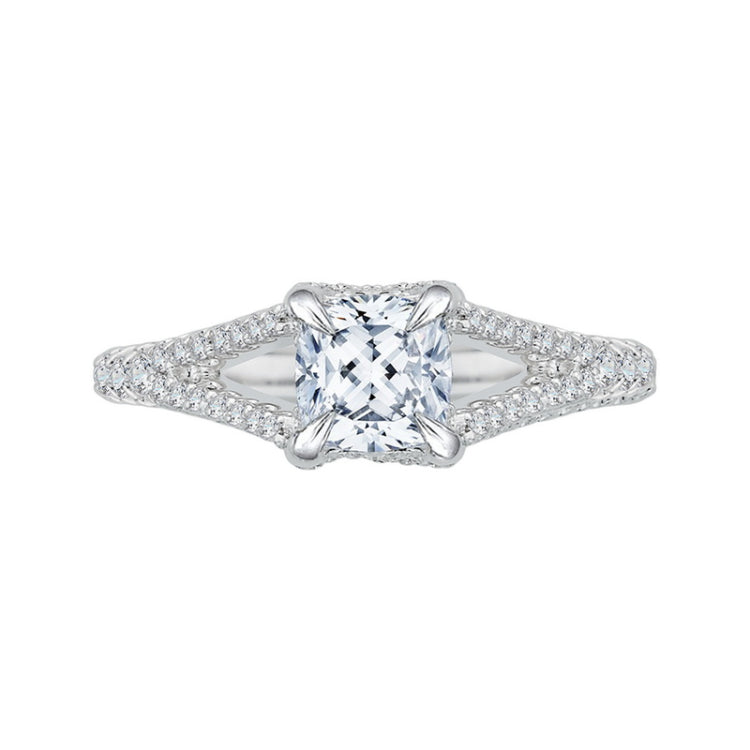 Split Shank Split Shank Cushion Cut Diamond Engagement Ring in 14K White Gold (Semi-Mount), Side Stone Shape: Round, Side Stone Color: GH, Side Stone: 73