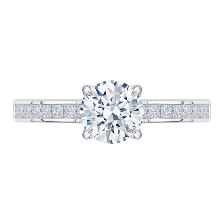 Cut Round Diamond Cathedral Style Engagement Ring in 14K White Gold (Semi-Mount), Side Stone Shape: Round, Side Stone Color: GH, Side Stone: 23