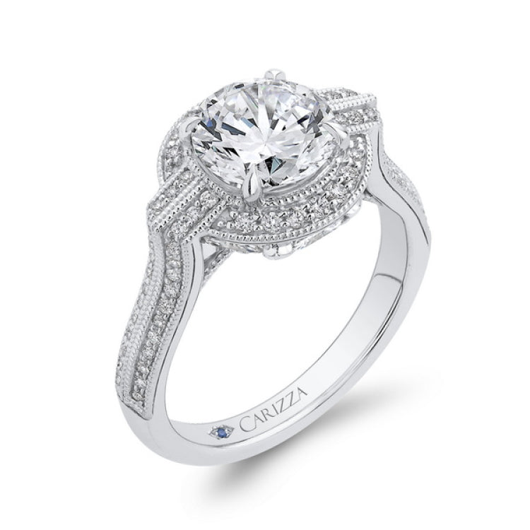 Round Diamond Cathedral Style Engagement Ring in 14K White Gold (Semi-Mount)