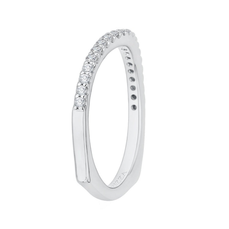 Euro Shank Round Diamond Wedding Band in 14K White Gold, Side Stone Shape: Round, Side Stone Color: GH, Side Stone: 21