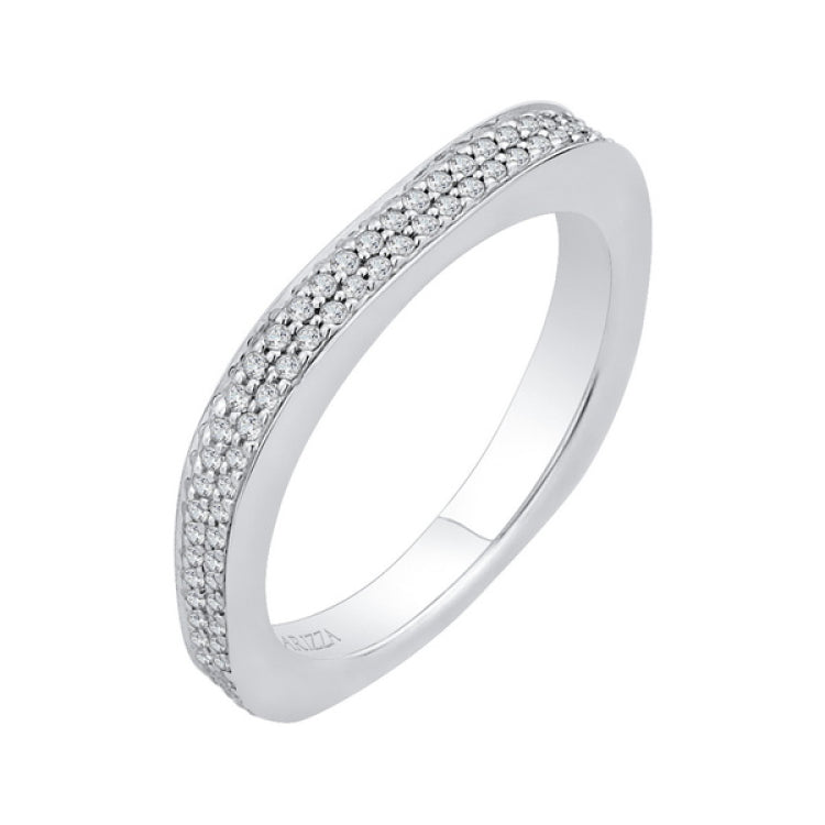 Round Diamond Wedding Band in 14K White Gold, Side Stone Shape: Round, Side Stone Color: GH, Side Stone: 90