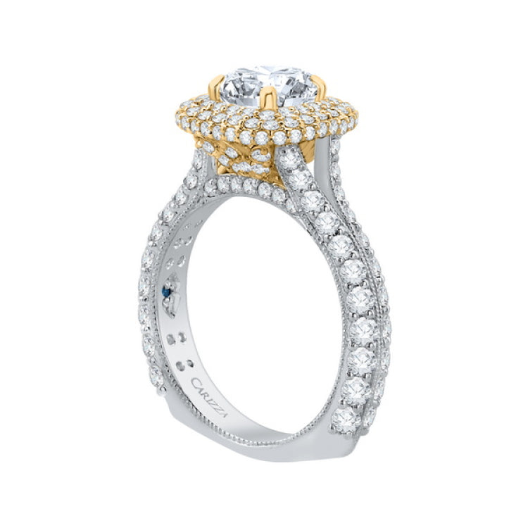 Diamond Double Halo Engagement Ring with Band in 14K Two-Tone Gold (Semi-Mount), Side Stone Shape: Round, Side Stone Color: GH, Side Stone: 145