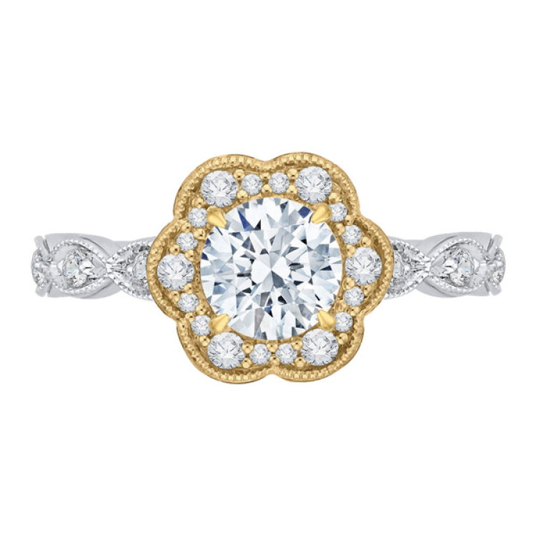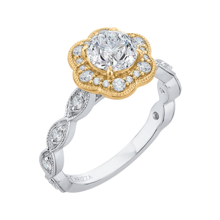 Diamond Floral Halo Engagement Ring in 14K Two Tone Gold (Semi-Mount)