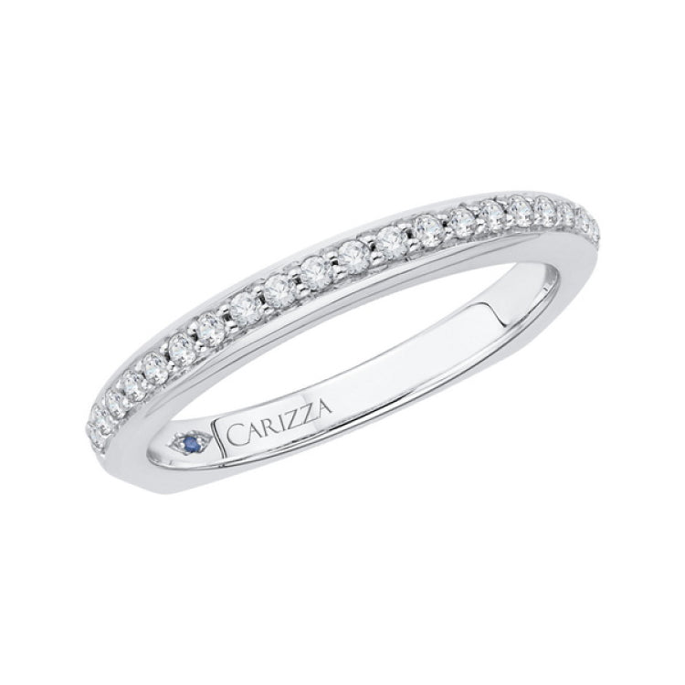 Euro Shank Round Diamond Half-Eternity Wedding Band in 14K White Gold, Side Stone Shape: Round, Side Stone Color: GH, Side Stone: 22
