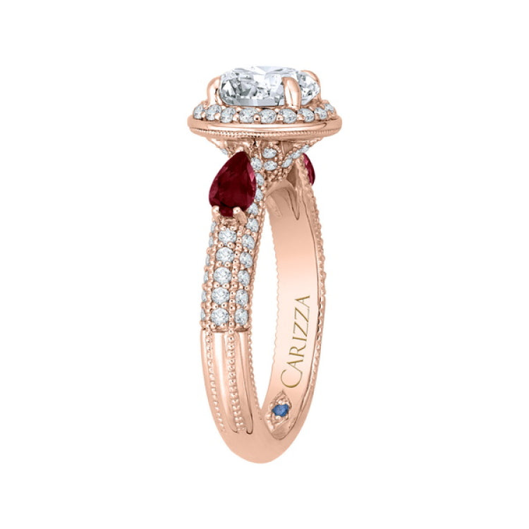 Round Diamond and Ruby Engagement Ring in 14K Rose Gold (Semi-Mount)