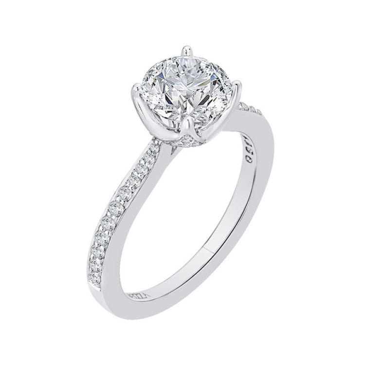 Round Diamond Cathedral Style Engagement Ring in 14K White Gold (Semi-Mount), Side Stone Shape: Round, Side Stone Color: GH, Side Stone: 45