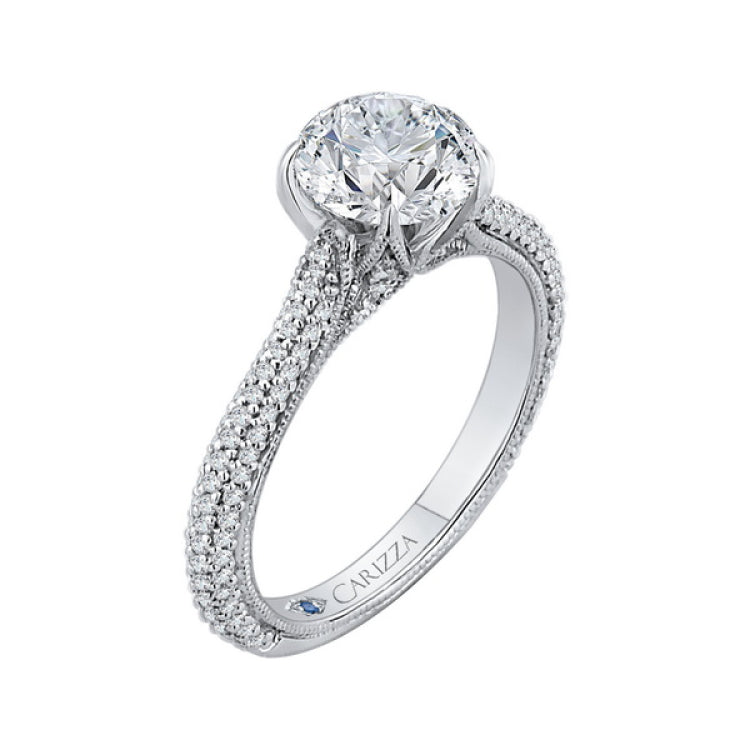Round Diamond Cathedral Style Engagement Ring in 14K White Gold (Semi-Mount)