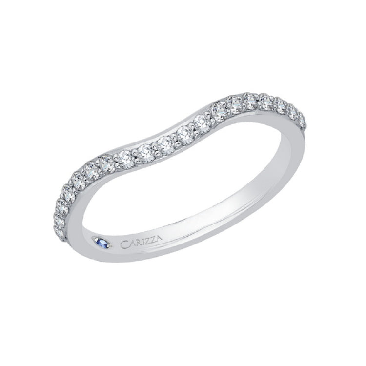 Round Diamond Half-Eternity Wedding Band in 14K White Gold, Side Stone Shape: Round, Side Stone Color: GH, Side Stone: 19