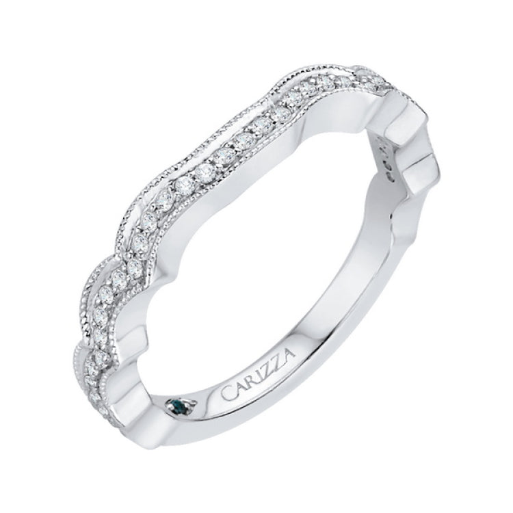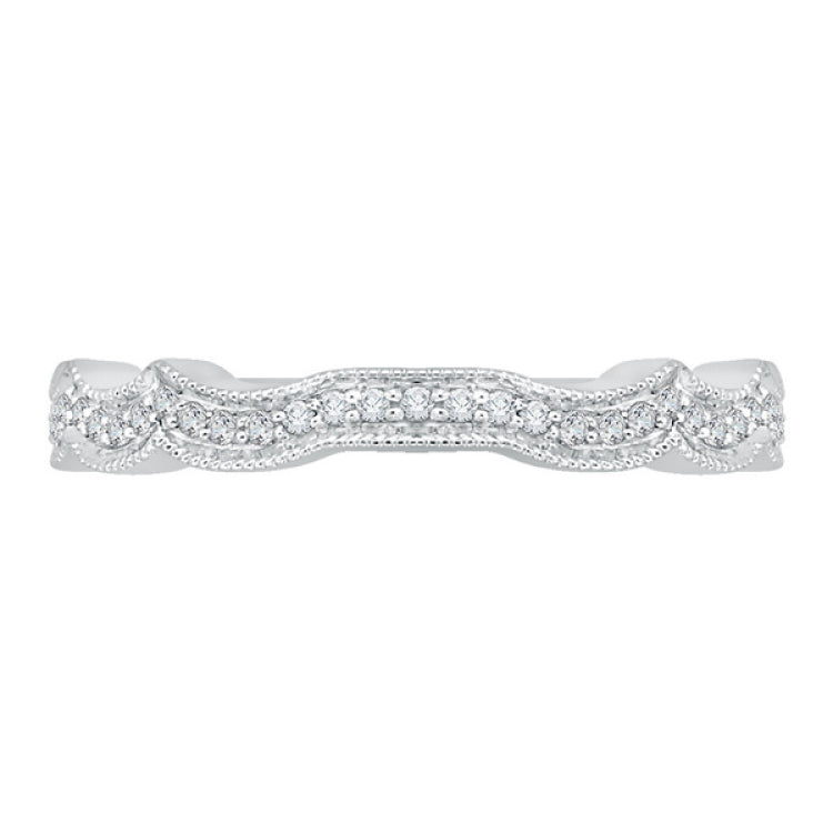 Round Diamond Wedding Band in 14K White Gold, Side Stone Shape: Round, Side Stone Color: GH, Side Stone: 40