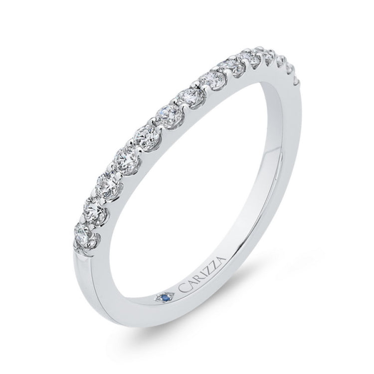 Round Diamond Wedding Band in 14K White Gold, Side Stone Shape: Round, Side Stone Color: GH, Side Stone: 15