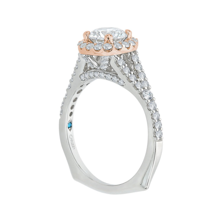 Split Shank Diamond Halo Engagement Ring in 14K Two-Tone Gold (Semi-Mount)