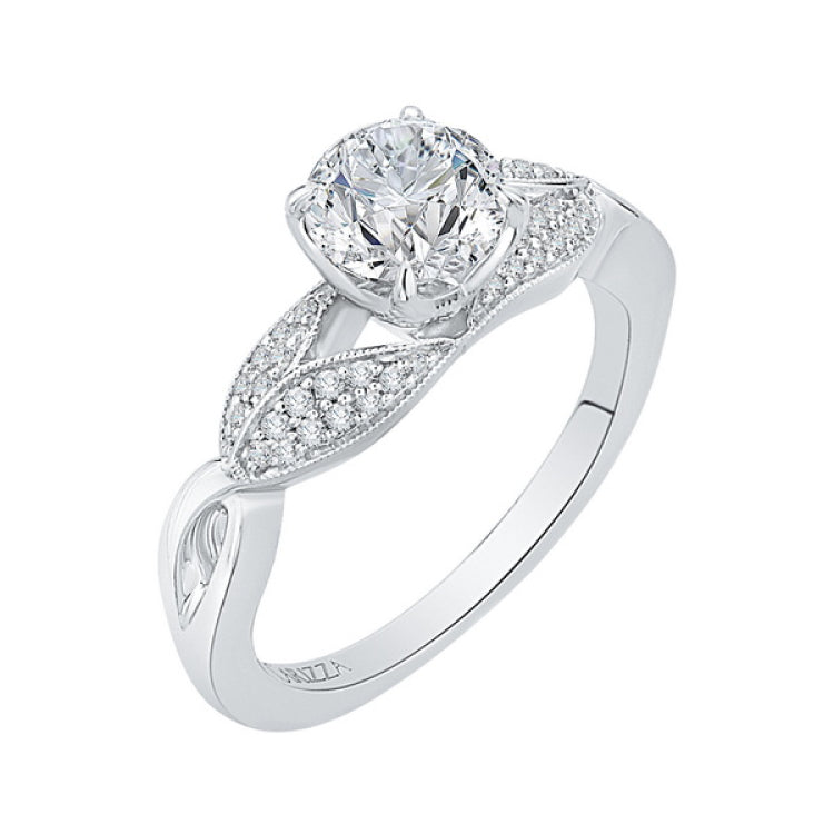 Split Shank Round Diamond Floral Engagement Ring in 14K White Gold (Semi-Mount), Side Stone Shape: Round, Side Stone Color: GH, Side Stone: 39