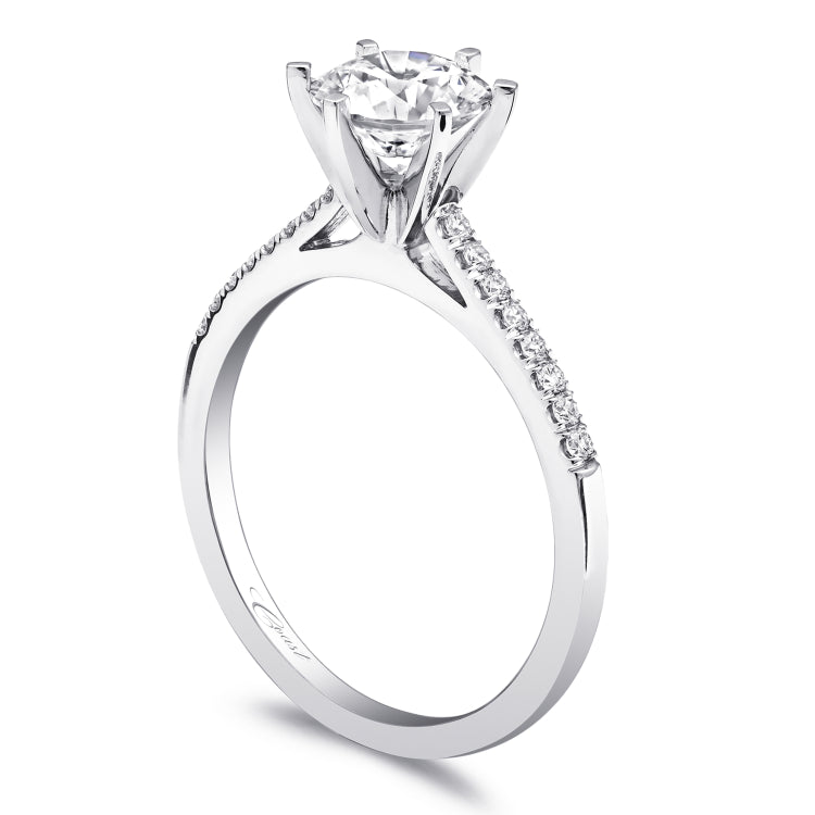 Petite prong set diamonds add a delicate touch of glamour to this traditional design. Band sold separately.