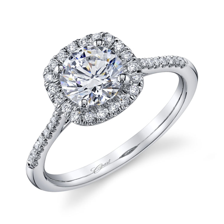 This beautiful engagement ring set with sparkling round diamonds shines from every angle. Bring the piece to life with the 1 ct center stone of your choice.