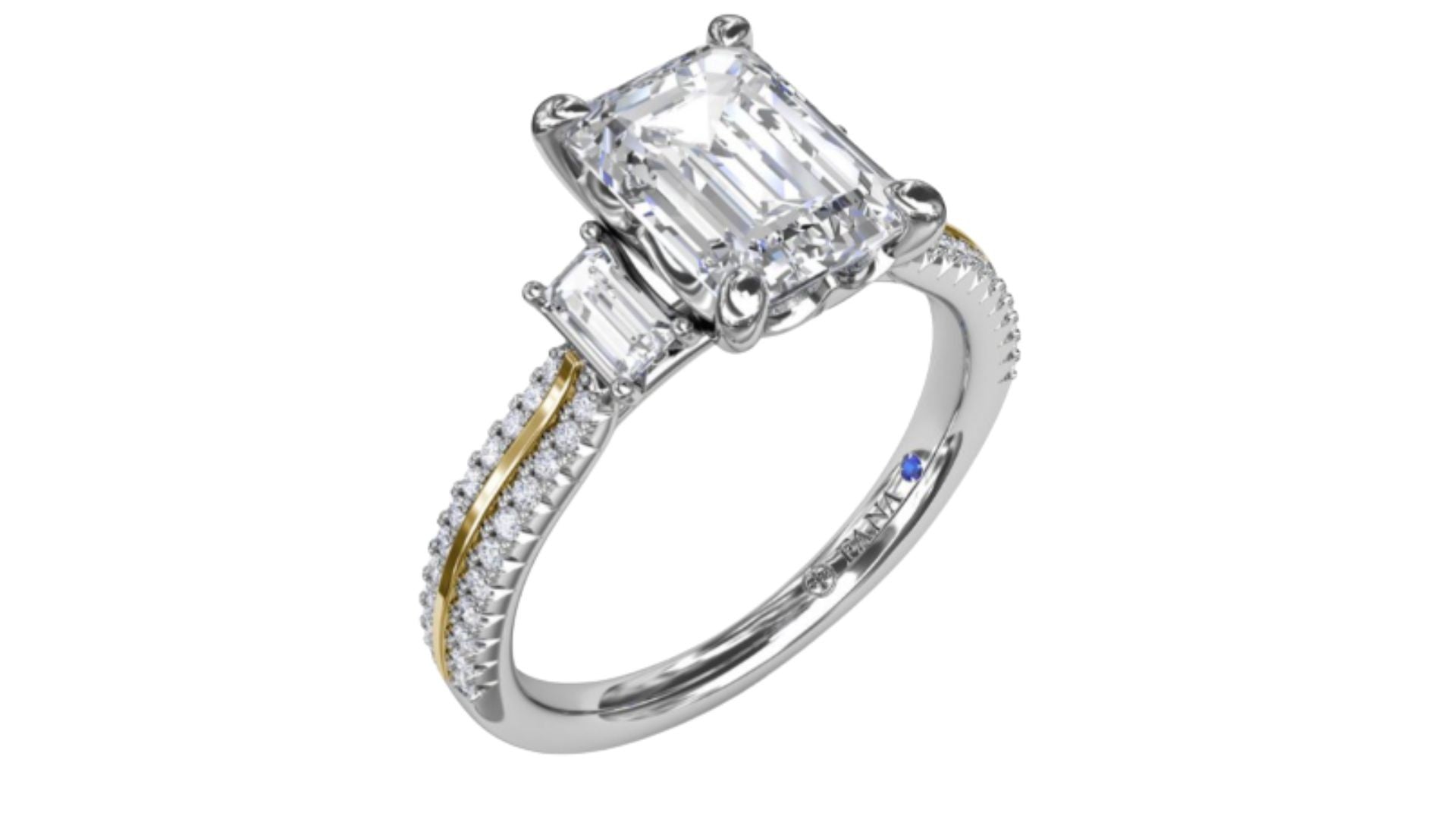 14 Karat White Gold/18 Karat Yellow Gold 48 Diamonds=.38 Carat FG VS Semi Cubic Zirconia Engagement Ring Size 6.5