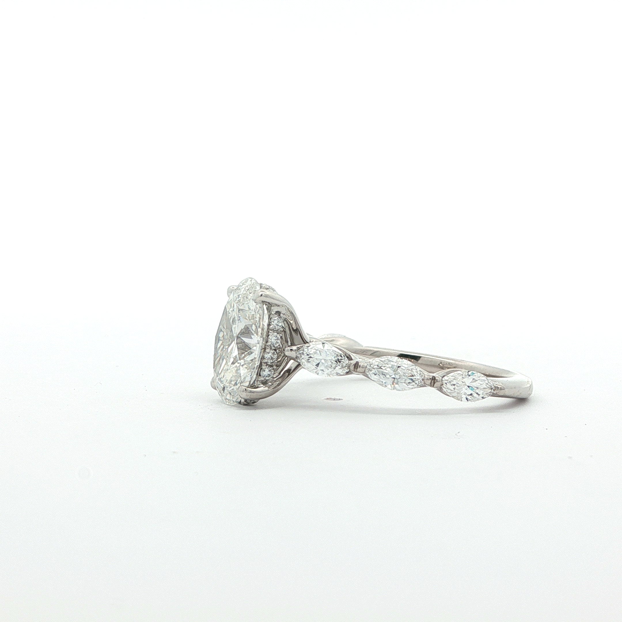 14 Karat White Gold 20 Lab Grown Diamonds=.66 Carat Oval Center Lab Grown Diamond=2 Carat Size 7
