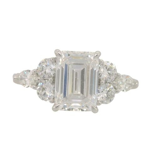 14 Karat White Gold Emerald Lab Grown Diamond=1.85 Carat FG VS Center 6 Lab Grown Diamond=.90 Carat FG VS Ring