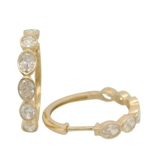 14 Karat Yellow Gold 12 Lab Grown Diamonds=1.5 Carat FG VS Hoop Earrings