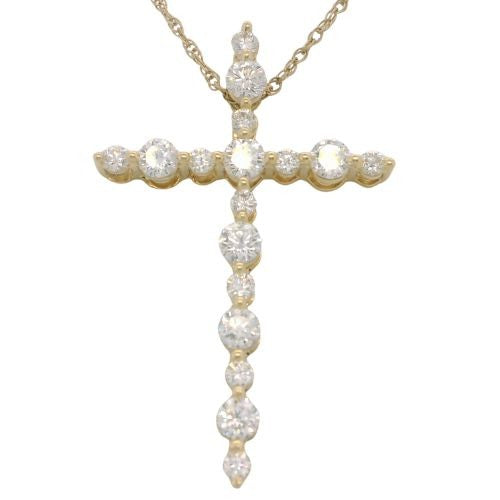 10 Karat Yellow Gold 17 Lab Grown Diamonds=1 Carat FG VS Cross with Chain