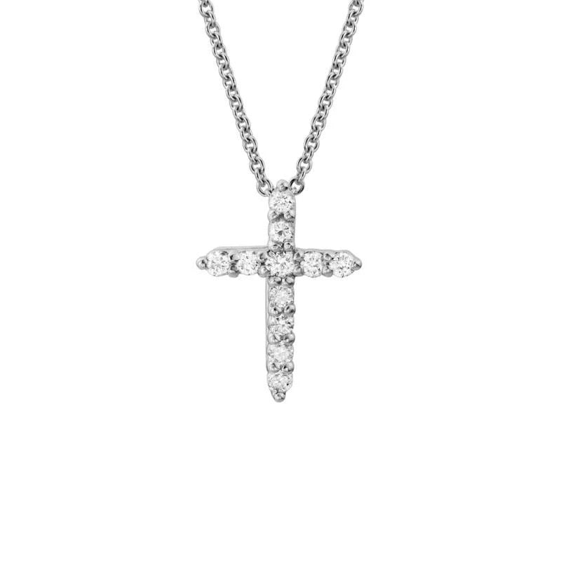 11 Diamonds=0.14 Carat 12x9mm Cross Pendant includes 16-18" Cable Chain with Lobster Clasp