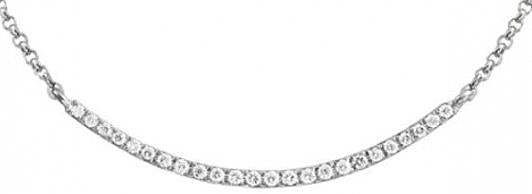 14 Karat White Gold 24 Diamonds= .12 Carat Curved Bar 18" Necklace